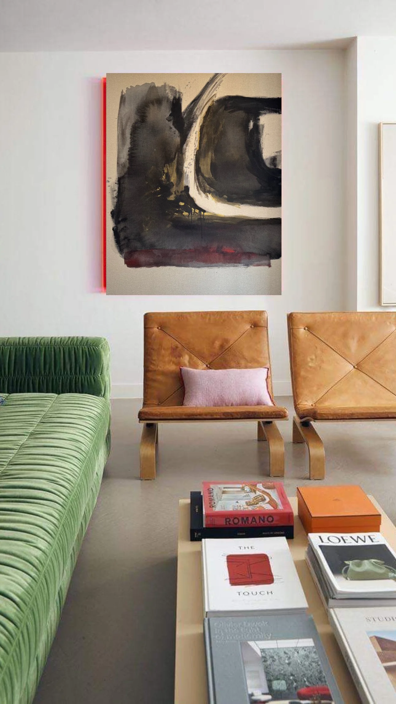 Hay algo hipnótico en la forma en que se entrelazan los colores. Las suaves veladoras y las contundentes pinceladas hablan de la capacidad interna de acoger lo que nos ocurre. Incluso las partes de nosotros que no nos gustan pueden ser abrazadas con dulzura. La suavidad es pura fortaleza. Abrazarnos en lo vulnerable nos otorga el poder interno de vivir sabiendo que, pase lo que pase, podemos sostenerlo y podemos sostenernos en ello.